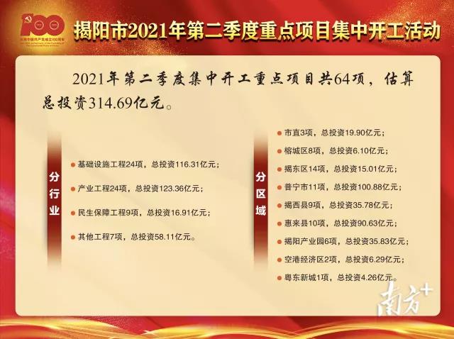 隨著施工機械的馬達聲“轟隆隆”響起,揭陽市“引龍工程”的號角正式吹響。不久之后,龍頸水庫的一股股甘流將緩緩穿過揭陽中心城區(qū),橫跨揭東區(qū)、普寧市等地,向遠方奔騰……這是揭陽市2021年第二季度集中開工64個重點項目中的亮點之一。在建黨100周年之際,揭陽牢牢把握“新發(fā)展階段、新發(fā)展理念、新發(fā)展格局”的新要求,緊緊圍繞省委、省政府對揭陽的發(fā)展定位,加速推進重大項目建設,持續(xù)掀起擴大有效投資的熱潮。